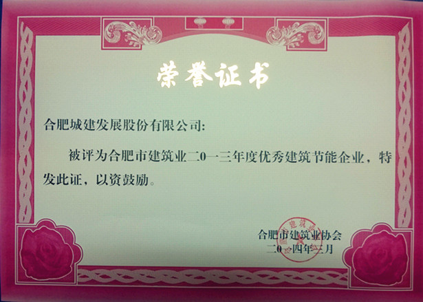 合肥城建被評為“合肥市建筑業(yè)2013年度優(yōu)秀建筑節能企業(yè)”