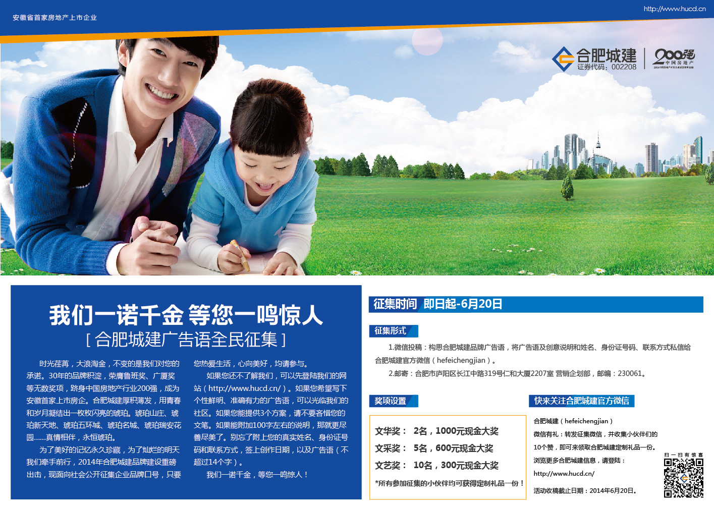 我們一諾千金 等您一鳴驚人——合肥城建廣告語(yǔ)全民征集